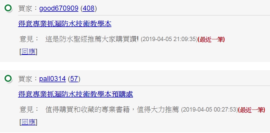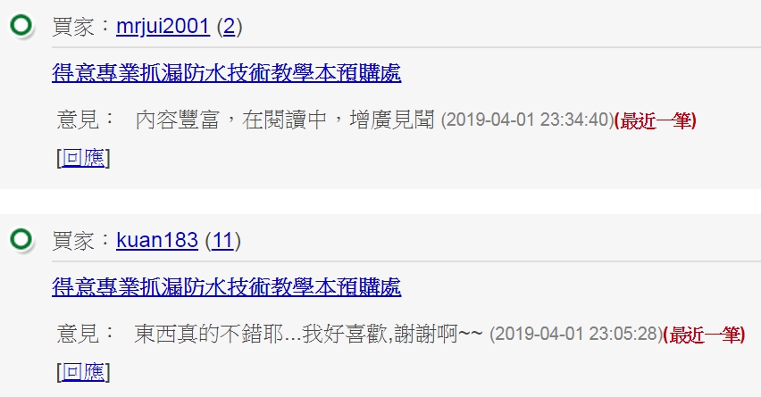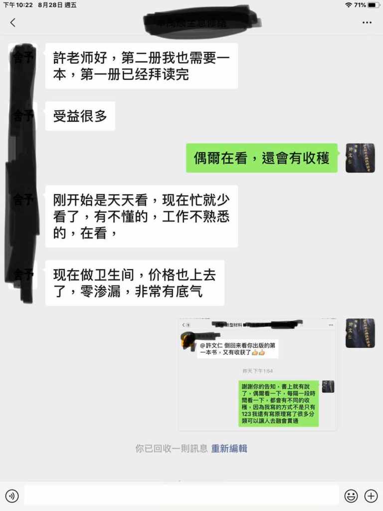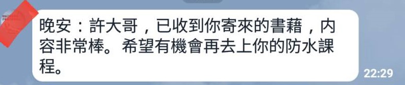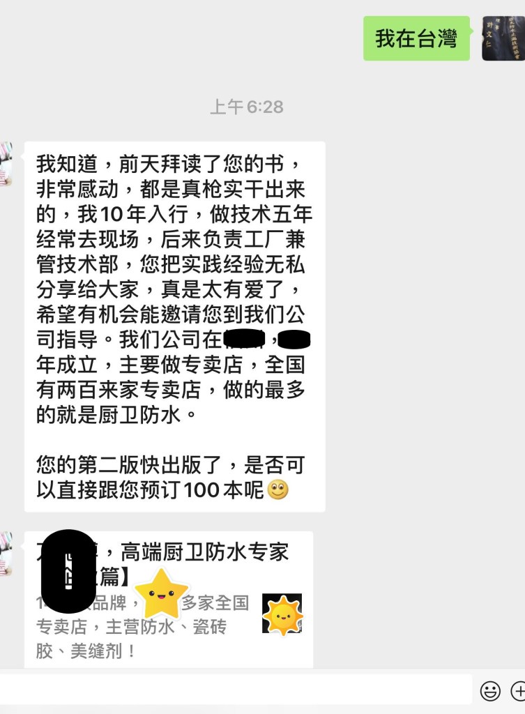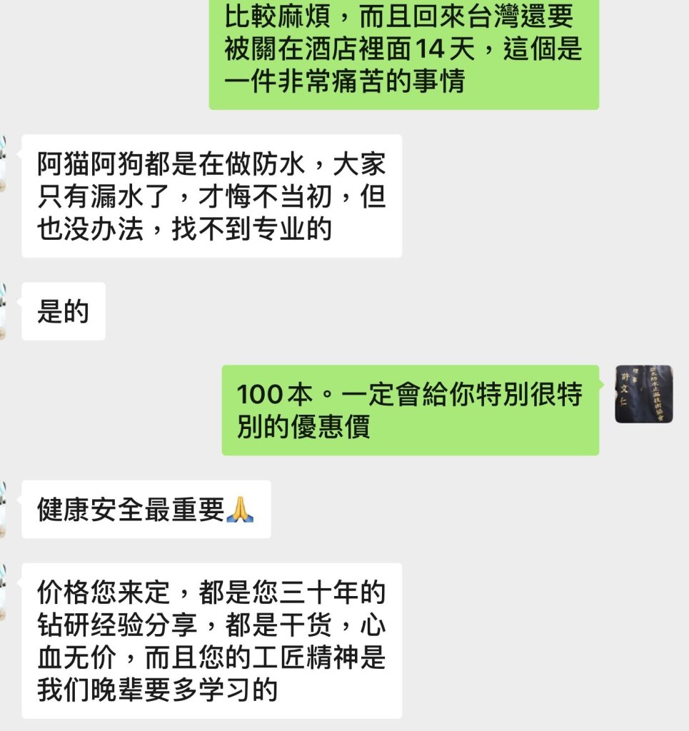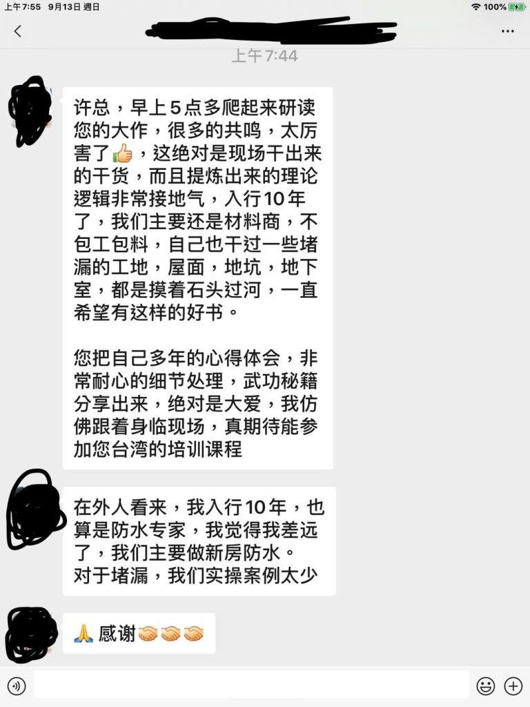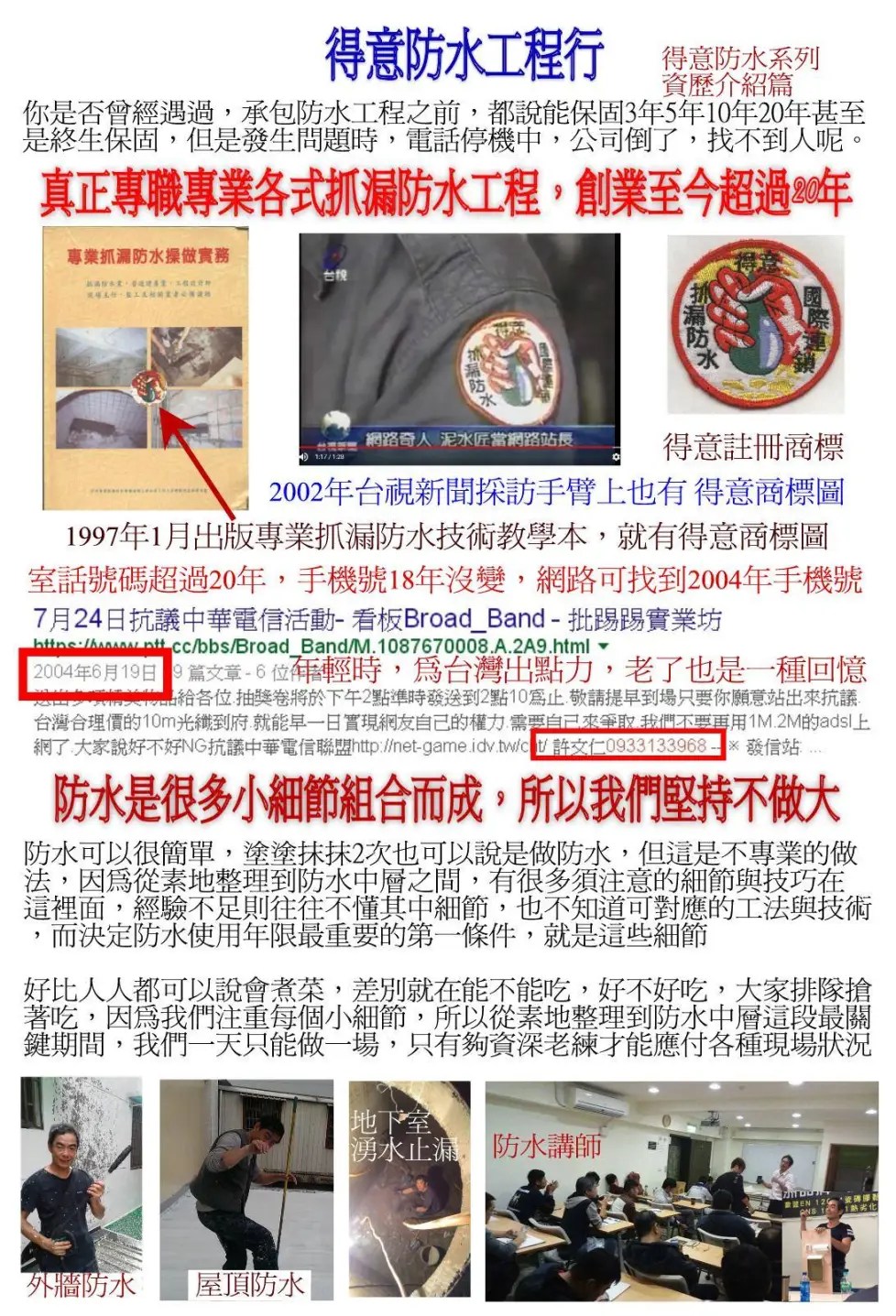 截至2022年11月為止,只有[得意專業抓漏防水技術教學本],唯一能自行紅至對岸,並能讓兩岸三地防水同業肯定與推薦,如下