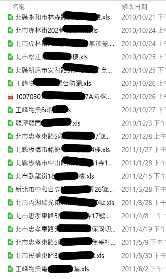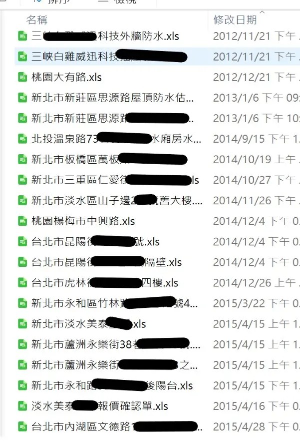 因為打字實在很難,所以有些估價單會用電腦打字列印,也會拿我做的[得意防水空白估價單],拿去找人大量列印之後,放一些在車上,看完現場就手寫估價內容,直接給屋主。